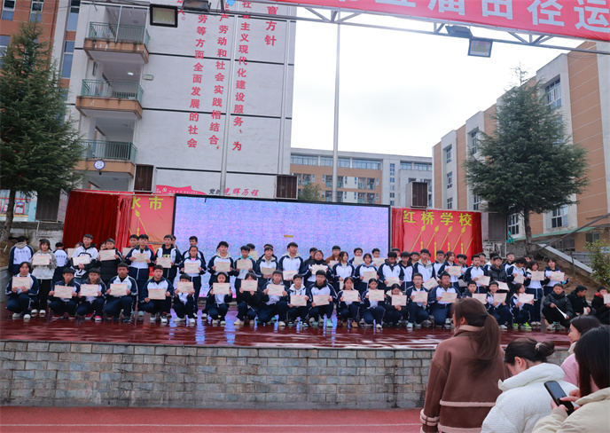 为鼓励、增强对学生的榜样教育,为树立典型,在全校学生中创设积极向上的学习氛围,培养学生全面发展,激发学生勇于争先的进取精神,形成良好的学风、校风。升旗仪式结束后,我校表彰了2023年11月份举行的第五届运动会,本次运动会共设有跳远、跳高,迎面接力、拔河等多个项目,经过激烈的比拼,运动员们获得了可喜的成绩,产生了集体奖、个人单项奖、优秀组织奖等奖项。
