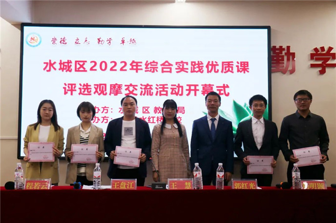 水城区教育局教科中心综合实践优质课观摩评选活动负责人王慧、六盘水红桥学校校长郭红光,以及来自全区各初中学校的评委、参赛教师、观摩教师40余人参加开幕式。